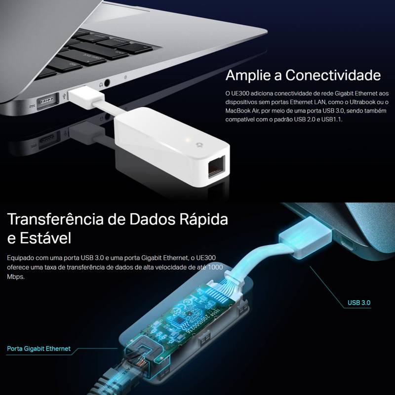 O UE300 adiciona conectividade de rede Gigabit Ethernet aos dispositivos sem portas Ethernet LAN, como o Ultrabook ou o MacBook Air, por meio de uma porta USB 3.0, sendo também compatível com o padrão USB 2.0 e USB1.1.