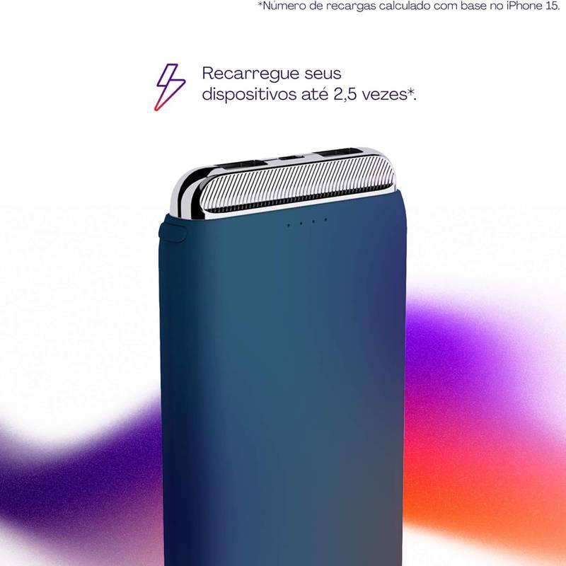 – ‎1 Power Bank de 12.000mAh na cor azul marinho, 1 Manual do usuário, 1 cabo de energia;