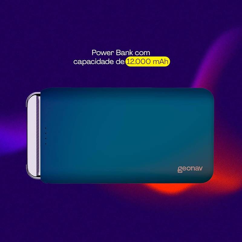 – Características: O Geonav Carregador Portátil 12.000mAh oferece conveniência e eficiência com duas saídas USB e uma USB-C, permitindo o carregamento simultâneo de até três dispositivos. Além disso, utiliza a tecnologia Pass Through para carregar aparelhos e o próprio carregador portátil ao mesmo tempo.