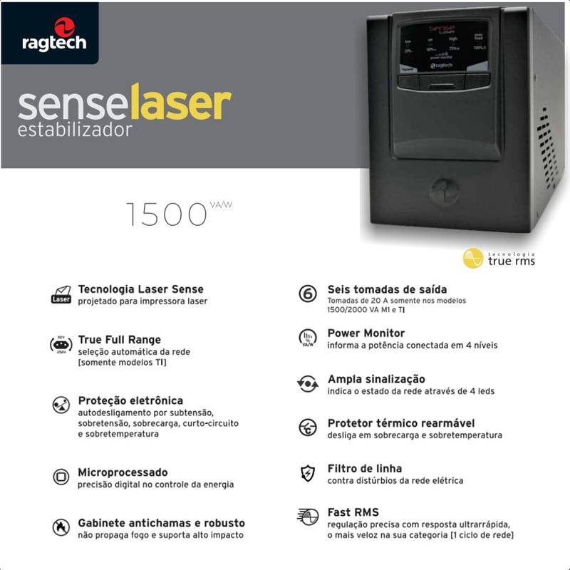 Estabilizador Sense Laser Ragtech 1500VA Microprocessado Trivolt 115V 127V 220V Saída 115V 3550