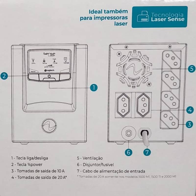 – Nu?mero de tomadas: 6 tomadas (modelo 1500 VA M1 e TI possuem 2 tomadas de 20A)