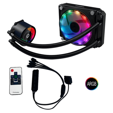 – Dimensões do radiador: 154mm(L) x 120mm(A) x 27mm(P)\r\rEspecificações:\r- Material de Bloco: Cobre \r- Material do radiador: Alumínio\r- Velocidade nominal: PWM 800 ~ 1900 RPM (PWM) +/- 10%\r- Fluxo de ar: 58,8 CFM\r- Ruído do fan: 28.8dBA\r- Tensão nominal: 12V DC\r- Pressão do fan: 2.2mm H2O\r- Durabilidade: 30.000 horas\r- RPM da bomba: 2500 +/- 10%\r- Tensão de entrada da bomba: DC 12V \r- Ruído da bomba: 30dBA (máx.)\r- Pressão da água coluna: 1.2m\r\rCompatibilidade com Processadores:\r- Intel LGA 2066 / 2011V3 / 2011 / 115x / 1200\r- AMD AM4 / AM3+ / AM3 / FM2+ / FM2\r\rConteúdo da Embalagem:\r- 1x Water Cooler ICE CHILL 120